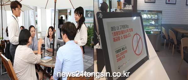 비오는 날 우산을 넣기 위해 사용하던 기존의 비닐커버 대신 빗물제거기와 빗물털이 통, 흡수용 카펫, 우산꽂이 등을 대체하여 사용하게 된다. 업무 공간에서 자주 쓰던 1회용 컵과 접시, 페트병 물 등은 구매를 금지하기로 했다. 또, 회의실 등에는 다회용 컵과 용기를 비치하여 1회용품 사용을 억제하도록 유도한다는 계획이다.