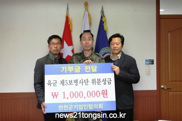 연천군기업인협의회(회장 전우현)는 지난 11일 육군 제5보병사단을 위문하고 성금 100만원을 기탁했다.