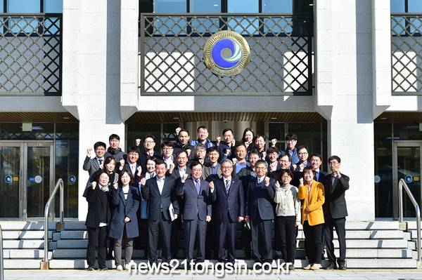 ▲ 지난 10월 29일 인천광역시를 방문한 김재현 산림청장이 인천시 직원들과 기념촬영을하고 있다.(사진=인천시)