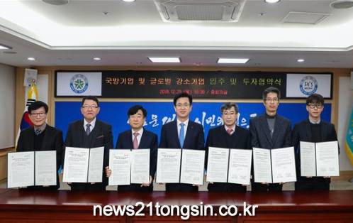 대전시는 20일 오전 10시 30분 중회의실에서 안산첨단국방산업단지․과학벨트 둔곡지구․하소산단에 투자할 우량한 국방기업 3개사, 글로벌 강소기업 2개사, 창업기업 등 6개사와 입주 및 투자협약을 체결했다.