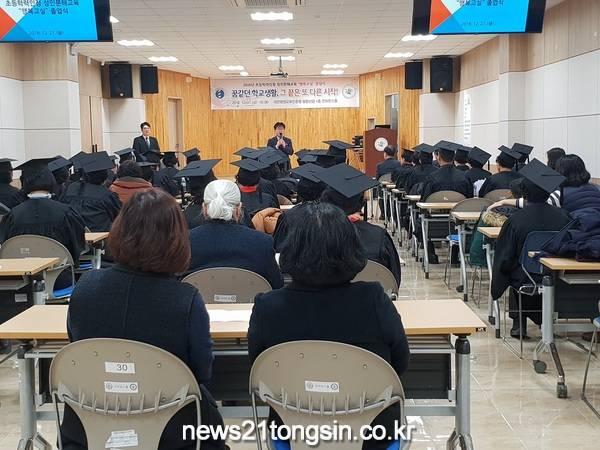 【대전=뉴스21통신】이영남 기자 = 대전평생교육진흥원은 21일 컨퍼런스홀에서 초등학력인정 성인문해교육 프로그램인 ‘행복교실’의 졸업식을 개최했다.