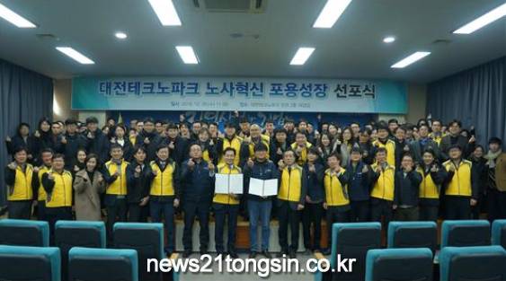 (재)대전테크노파크(원장 최수만) 노사는 비정규직 근로자의 정규직 전환 등 노사혁신 포용성장을 위해 함께 노력하기로 선언했다.