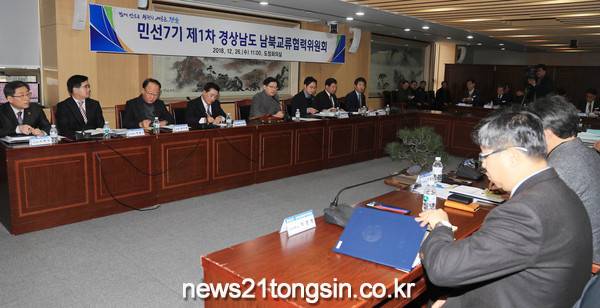 경상남도가 26일(수) 11시, 도정회의실에서 19명의 위원과 협력분야 실국원장 등 30여 명이 참석한 가운데 ‘민선 7기 제1차 남북교류협력위원회’를 개최했다.