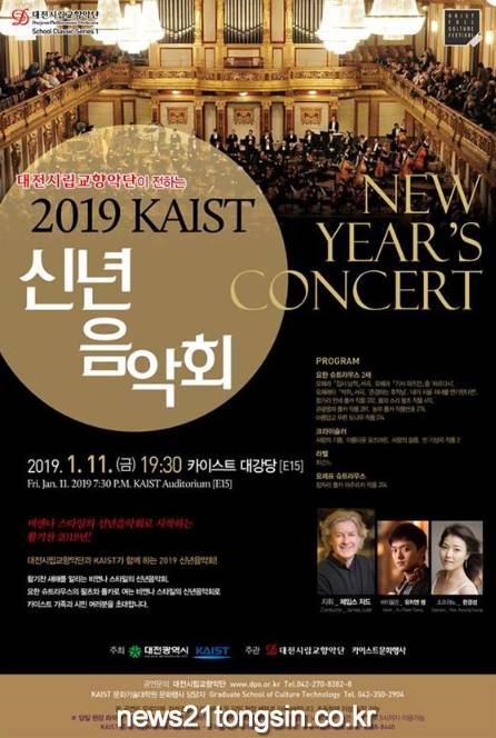 대전시립교향악단과 카이스트는 오는 11일 오후 7시 30분 카이스트 대강당에서 비엔나 풍의 왈츠와 폴카로 활기찬 새해를 여는 ‘KAIST 신년음악회’를 개최한다.