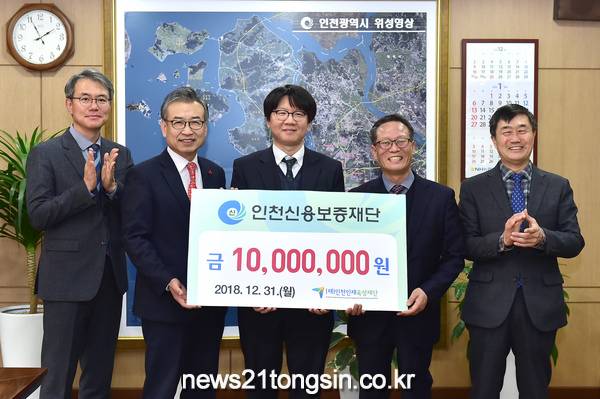 인천신용보증재단(이사장 조현석)의 직원 일동이 12월 31일 (재)인천인재육성재단(이사장 박남춘 인천광역시장)에 장학금 1천만원을 기탁했다.