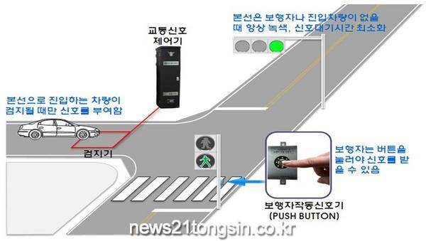 이를 개선하고자 지능형교통신호시스템의 감응신호를 도입했고 이 방식은 도로에 설치된 검지기를 통해 차량과 보행자가 통과할 경우에만 신호를 켜지게 하는 시스템으로 차량과 보행자 부재로 인한 손실시간을 없애 교통신호를 효율적이고 안정적으로 운영하여 사고위험을 최소화 할 수 있도록 하는 교통신호시스템이다.