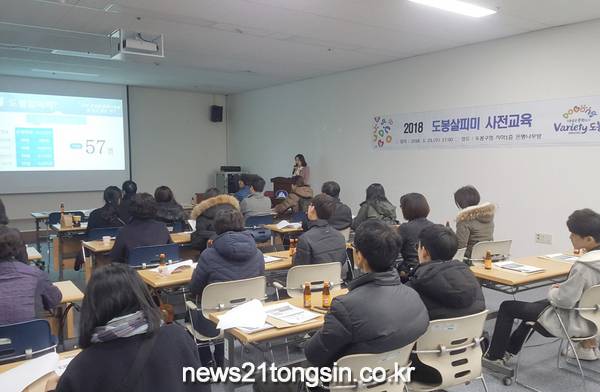 ▲ 도봉살피미 사전 교육 모습(사진=도봉구)도봉구(구청장 이동진)는 주민들이 직접 내 마을의 불편사항을 찾아내 쾌적하고 안전한 지역공동체를 만들어 가기 위한 자원봉사단 ‘도봉살피미’를 새롭게 모집한다고 밝혔다.