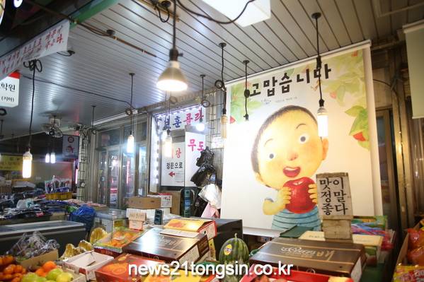 전통시장의 특징은 낮에 상점들이 영업을 할 때는 활기와 생동감이 넘친다. 그러나 영업을 마감하고 셔터 문을 닫아 버리면 낮의 생동감과 활기는 어디로 가버리고 왠지 삭막하고 어두운 장소로 변한다.
