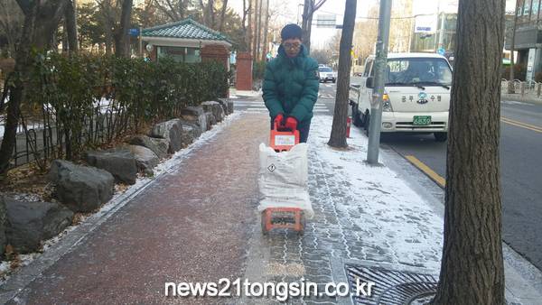 구가 지난 겨울부터 자동살포기 45대를 활용한 결과 제설작업의 효율이 크게 향상된 것으로 나타났다. 불규칙하게 살포됐던 염화칼슘이 살포기 활용 후 2.0m이상 균일하게 뿌려졌고 제설비용도 1㎞당 60만원에서 11만 2000원으로 크게 줄었다. 그만큼 제설제 과다사용을 억제해 환경오염을 줄일 수 있다.