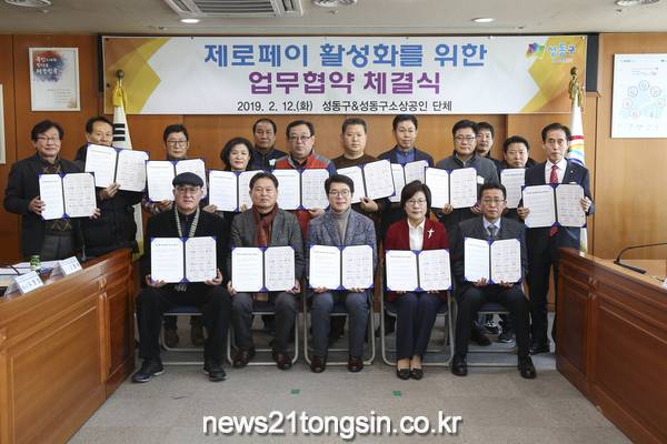 성동구(구청장 정원오)는 지난 2월 12일 소상공인 관련 16개 단체와 제로페이 활성화를 위한 업무협약을 체결했다고 밝혔다.
