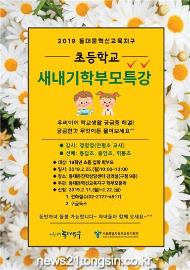 참석을 희망하는 새내기 학부모는 이달 22일(금)까지 동대문구청 교육진흥과(02-2127-4517)에 신청하면 된다.