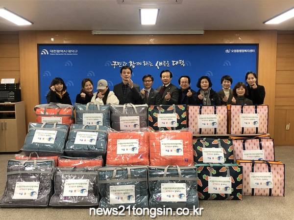 [대전=뉴스21통신] 대전 대덕구 오정동지역사회보장협의체(공동위원장 설재균, 김영재)는 복지사각지대 파지수집자와 저소득층 아동들에게 방한복과 이불을 전달하는 따뜻한 겨울나기 행사를 실시했다.