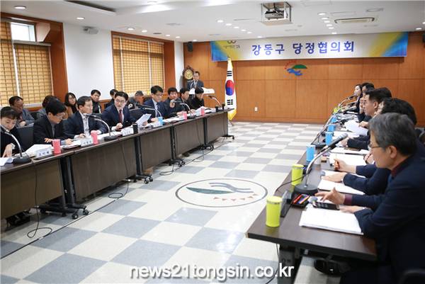 ▲ (사진=강동구 제공)강동구(구청장 이정훈)는 지난 16일 오후 15시 강동구청 회의실에서 더불어민주당 강동갑지역위원회가 참여하는 ‘2019년 1분기 당정협의회’를 개최했다.
