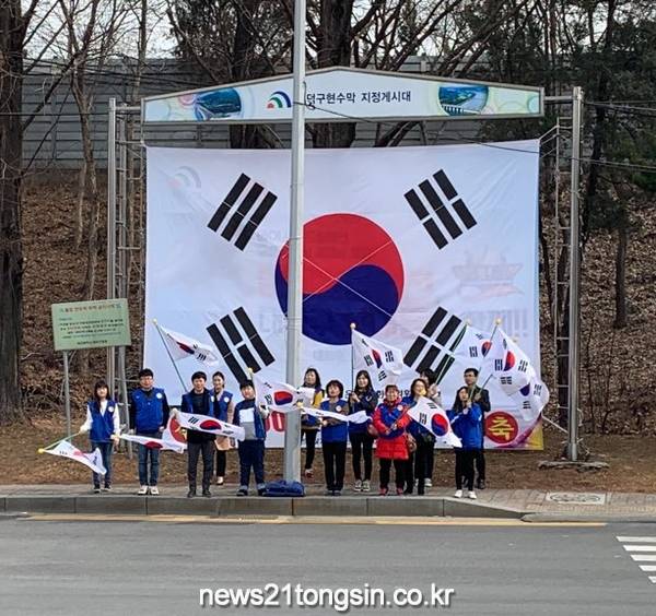바르게살기운동 대화동위원회(위원장 김병관)는 3.1운동 100주년을 맞이해 조국독립을 위해 목숨까지도 바쳤던 숭고한 선열들의 정신을 기리고자 지난 22일 지역 주요노선인 국도17호선 대화산단삼거리 게시대에 대형태극기(6m×4m)를 제작․게양했다.