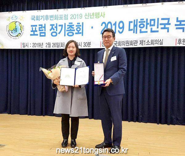 신구대학교(총장 이숭겸) 네이처플러스 환경동아리가 26일 오전 국회의원회관에서 열린 ‘2019 대한민국 녹색기후상’ 시상식에서 장려상(국회기후변화포럼 공동대표상)을 수상했다.