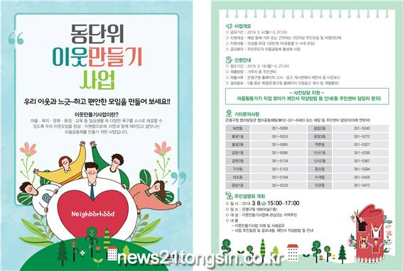 은평구(구청장 김미경)는 마을 공동체 조성 및 활성화를 위한 동별 이웃만들기사업을 3월 4일 공고를 시작으로 본격 추진한다.