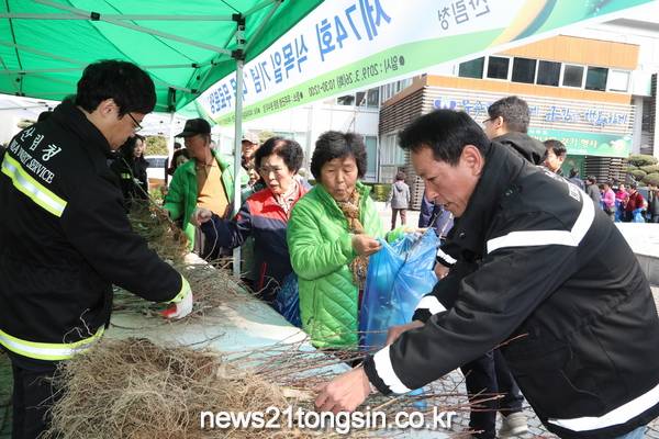 (전북/뉴스21)송태규기자= 무주군은 무주국유림관리소와 무주군산림조합 등 산림 유관 기관과 함께 지난 26일 무주군청 분수대 앞에서 나무 나누기 행사를 가졌다. 이날 행사는 식목일을 앞두고 군민들과 산림의 중요성을 공유하며 나무심기에 동참할 수 있도록 하자는 취지에서 마련된 것으로, 자리를 함께한 1천 5백여 명의 주민들과 유실수, 야생화, 초화류, 조경수 등 13개 수종 5,250그루를 나눴다.