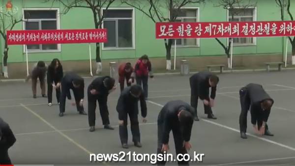 북한 조선중앙통신이 '정구 열풍이 불고 있는 국토환경보호성' 이라는 제목으로 방송했다.