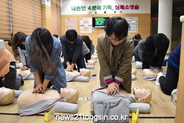 구는 지난 2012년 전국 최초로 심폐소생술 상설교육장을 개설, 매년 3만 명 이상의 주민이 심폐소생술 교육을 받고 있다. 지난해에는 학생, 교사, 경찰 등 주민과 직원 포함 3만4983명이 교육을 이수, 현재까지 21만 8356명이 교육을 받았다.