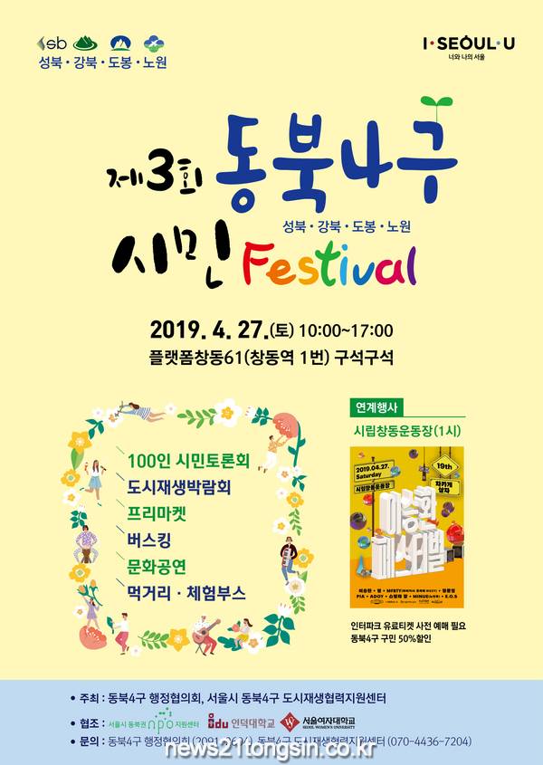 동북4구 행정협의회가 주관하는 ‘동북4구 시민페스티벌’은 도봉·강북·성북·노원의 동북4구가 주민참여와 협치에 대한 시민들의 관심을 높이고 지속적인 협력을 강화하기 위해 2017년부터 진행하고 있다.