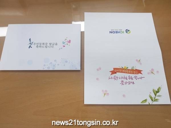 경기도 이천시는 만17세가 되어 생애 첫 주민등록증을 발급 받는 시민들에게 5월부터 축하메시지가 담긴 카드를 제작하여 주민등록증과 함께 교부할 예정이라고 밝혔다. 주민등록증을 신규 발급 받은 이천 시민으로, 이천시 읍면동 행정복지센터 방문 수령자에게 카드를 교부하여 생애 첫 주민등록증을 만드는 것을 특별한 의미로 만들어 주기 위함이다.