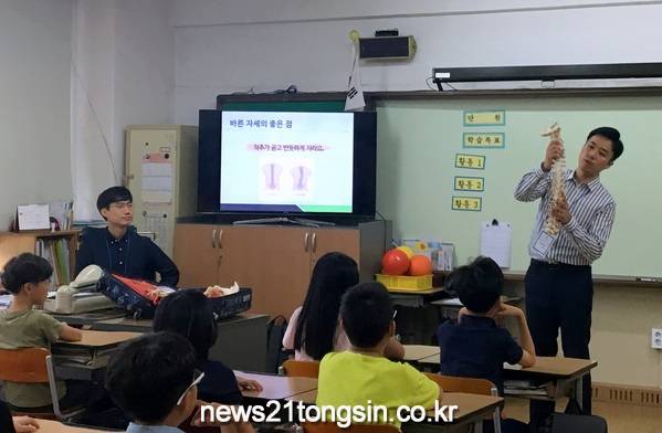 송영민 자세교정운동 전문가가 강사로 나서 △첫 주에 바른 자세와 나쁜 자세 비교, 친구 자세 관찰하기, 바르게 앉기 연습, △둘째 주에 스트레칭, 척추세우기 체조, 나쁜 자세 습관 고치는 법 △셋째 주에 책가방 바르게 메는 법과 책가방 끈 조절하는 법 등에 대해 강의한다.