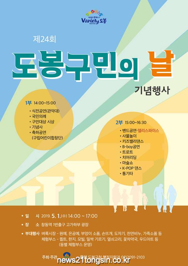 ▲ 제공=도봉구청도봉구(구청장 이동진)는 오는 5월 1일 창동역 1번 출구 고가하부 ‘창동역 공연특화광장’에서 ‘제24회 구민의 날’ 기념행사를 오후 2시부터 개최한다.