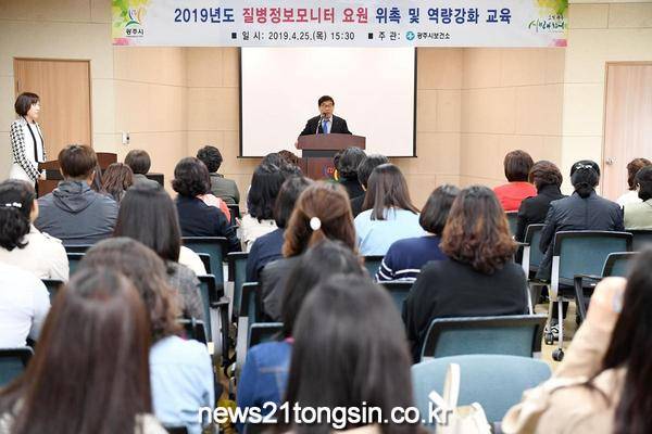 광주시(시장 신동헌)는 25일 보건소 회의실에서 질병정보 모니터요원 204명을 위촉하고 ‘2019년 질병정보 모니터요원 위촉 및 역량강화 교육’을 실시했다.