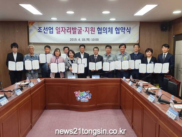거제시는 18일 시청 참여실에서 고용노동부 통영지청을 비롯한 유관기관과 양대조선, 협력사 관계자 등이 참석한 가운데‘조선업 일자리 발굴․지원 협의체’협약식을 개최했다.