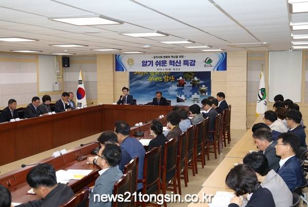 함안군은 29일 오전 8시 30분 군청 별관 3층 회의실에서 김상원 경상남도 도정혁신추진단장을 강사로 초청해 ‘공직사회 변화와 혁신을 위한 알기 쉬운 혁신’이라는 주제로 특강을 개최했다.