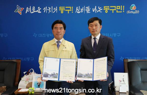 대전 동구(구청장 황인호)와 영농조합법인 ‘가시연꽃 들꽃마을’(대표 김창규) 은 3일 구청장 접견실에서 국내 최초 가시연꽃 전시회 개최를 위한 업무협약을 체결했다고 밝혔다.