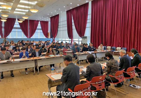 ▲ 도봉구 주민자치회 공청회 중 토론 진행 모습(사진제공=도봉구청)도봉구(구청장 이동진)는 지난 4월 30일 구청 16층 자운봉홀에서 주민자치위원, 전문가, 구의원, 관계 공무원 등이 참여한 가운데 ‘서울시 도봉구 주민자치회 설치?운영에 관한 조례’ 일부 개정을 위한 공청회를 진행했다.