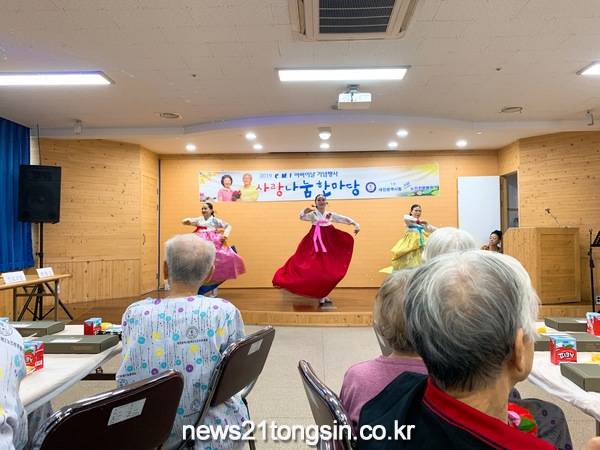 이날 어르신들을 위한 기념공연은 송락예술단(단장 송미자)의 부채춤, 난타 등 고전무용에 이어 기적소리마술사 홍수복씨의 마술공연, 어른신들의 노래자랑, 직원들의 장기자랑 및 어버이노래 합창 순으로 진행되었다.