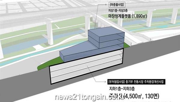 이번 사업은 청계천변 제방부지인 마장동 525번지(1,704㎡)에 지상3층, 연면적 4,500㎡, 130대 규모의 건물형 주차장을 설치하고, 다양한 방문고객 편의시설을 연계하여 장기적으로 지역거점 복합시설로 발전시킬 예정이다.