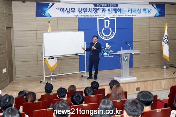 허성무 창원시장은 7일 오후 2시부터 경남대학교 ‘21세기형 새로운 리더십’ 교양 강좌 수강생들을 대상으로 초청 특강을 가졌다.