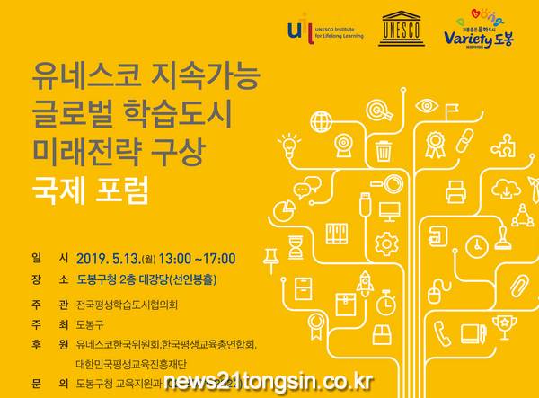 ▲ [사진=국제포럼 홍보문]도봉구(구청장 이동진)는 5월 13일 오후 1시에 구청 2층 선인봉홀에서 제3회 Variety 도봉평생학습포럼으로 ‘유네스코 지속가능 글로벌 학습도시 미래전략 구상 포럼’을 전국 평생교육 관계자 및 전문가 등 150여명 참여한 가운데 개최한다.
