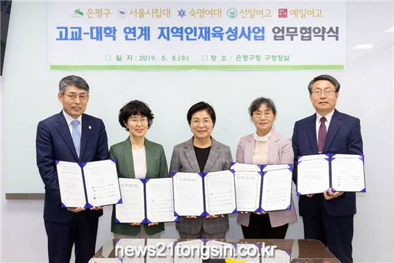 서울 은평구(구청장 김미경)는 서울시립대학교, 숙명여자대학교, 선일여자고등학교 및 예일여자고등학교와 지난 5월 8일에 은평구청에서 고교-대학 연계 지역인재육성사업의 업무협약을 맺었다.
