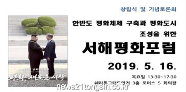 인천광역시(시장 박남춘)와 인천연구원(원장 이용식)은 5월 16일(목) 오후 2시 쉐라톤그랜드인천호텔 회의장에서 「서해평화포럼」 창립식 및 기념토론회를 개최했다.