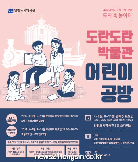 인천광역시(시장 박남춘) 인천도시역사관은 지역 어린이를 위한 주말 어린이 교육프로그램 <</span>도시 속 놀이터 - 도란도란 박물관 어린이 공방>을 운영한다고 밝혔다.