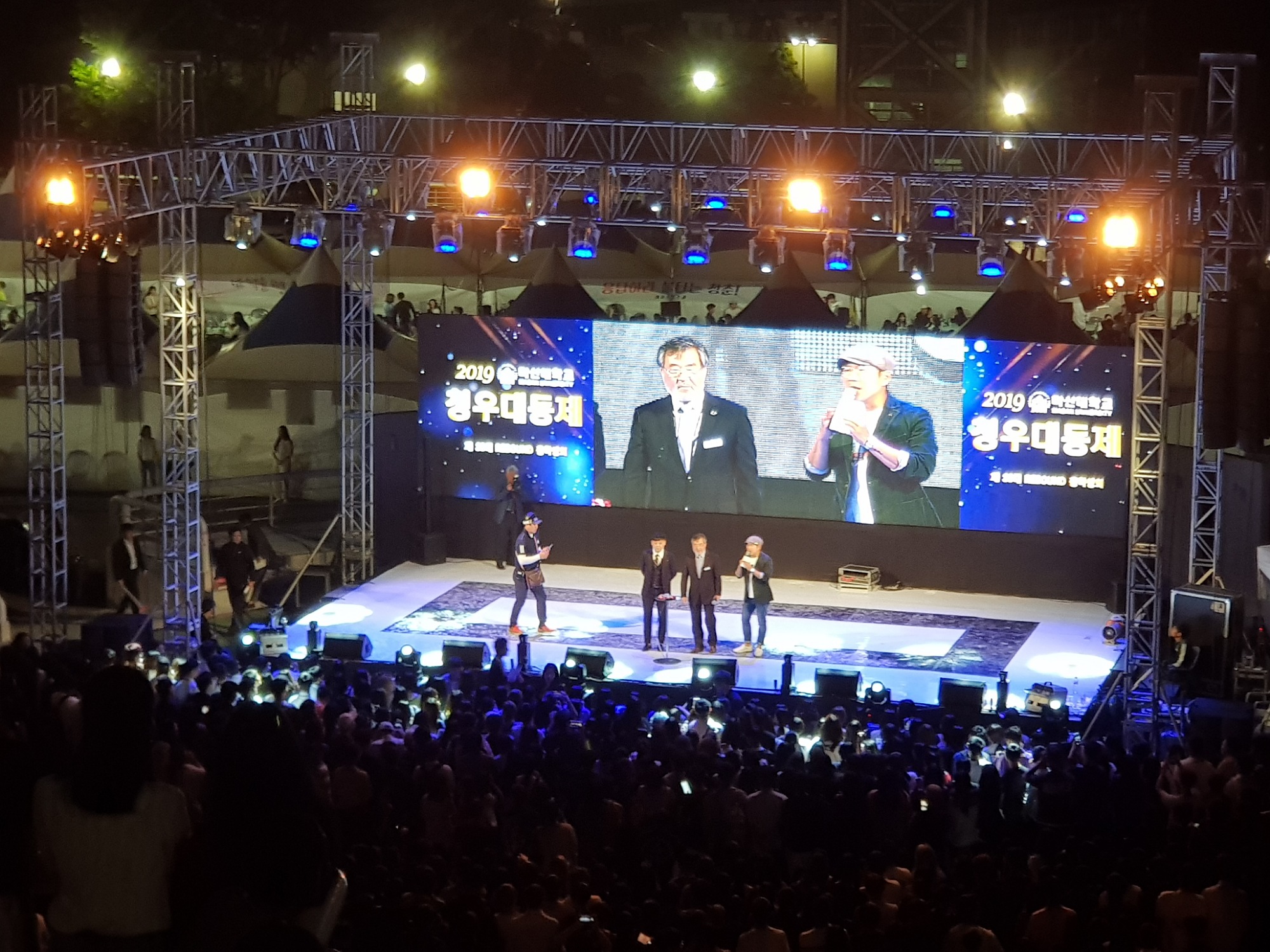 마산대학교 2019년 청우대동제(2019.05.16.~17) 첫날 이 학은 총장님의 축사와 화려한 폭죽쇼로 축제의 화려한 막을 올렸다.