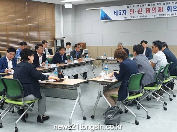 동구 수소연료전지발전소 갈등해결을 위한 제5차 민관협의체 회의가 지난 16일 오후7시 동구 행복지원센터 2층 회의실에서 열렸다.