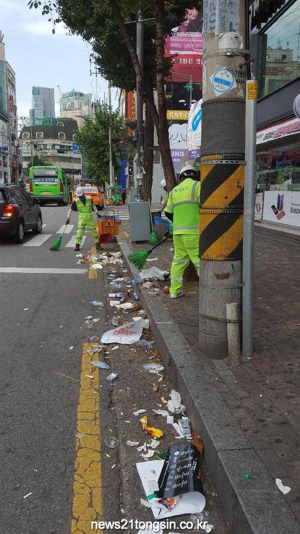 마포구(구청장 유동균)가 지역의 대표 관광명소인 홍대 클럽거리 일대의 휴일 가로청소 방법을 개선하고 쓰레기 없는 거리 조성에 나선다고 밝혔다.