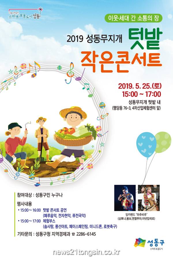 ▲ [사진=홍보포스터]원오)는 오는 5월 25일 오후 3시 성동 무지개텃밭(행당동 76-3)에서 ‘이웃·세대 간 소통의 장’이라는 주제로 「성동 무지개텃밭 작은 콘서트」를 개최한다.