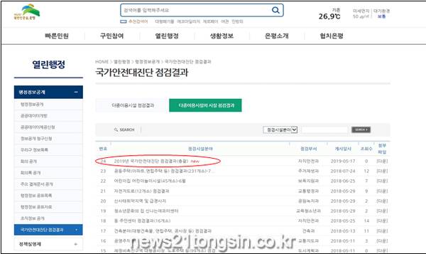 - 은평구청 > 열린행정 > 행정정보공개 > 국가안전대진단 점검결과