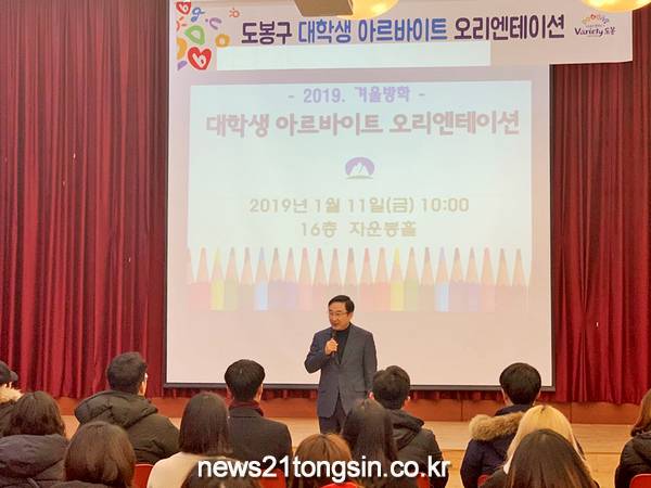 ▲ [사진=대학생 아르바이트 오리엔테이션]도봉구(구청장 이동진)가 여름방학을 맞아 공공기관의 업무 체험을 통해 사회경험을 쌓을 수 있는 ‘2019 여름방학 대학생 아르바이트’에 참여할 대학생(재·휴학생)45명을 모집한다.