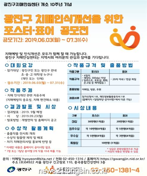▲ [사진=홍보포스터]광진구(구청장 김선갑)가 위탁운영 중인 광진구치매안심센터가 개소 10주년 기념으로 지역 내 치매인식개선을 위해 포스터·표어를 공모한다.