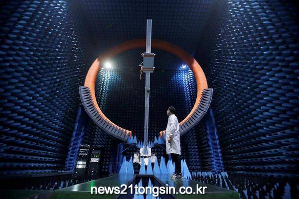 다중 프로브 구형 근접 필드 테스트 시스템의 5G 기지국 안테나를 사용하고있다.
