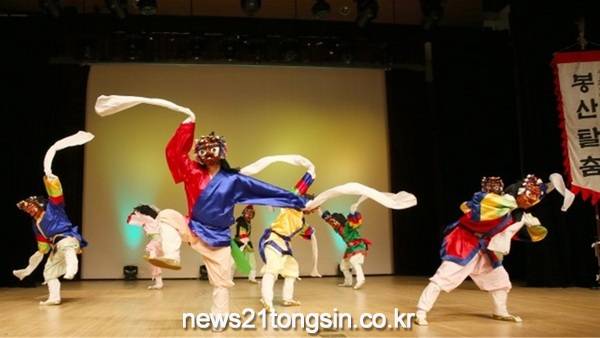 한편, 한국의 대표적 가면극인 봉산탈춤은 신에게 풍년과 안녕을 비는 제의적인 요소와 불교 및 지배 계층에 대한 풍자 중심의 해학적인 대사에 흥겨운 가락의 춤과 노래가 함께하는 서민들이 즐기는 전통적인 종합 연극이다. 황해도 봉산에서 유래한 탈놀이로 단오날에 모닥불을 피워놓고 밤새 연희되었다 하며, 오래전 봉산의 연희자들이 월남하여 지금까지 전승하고 연희해 왔다 한다.