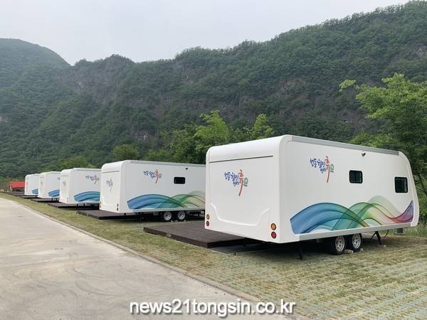 6월 15일부터 본격적으로 운영을 시작한 카라반은 더블침대 1개, 2층 침대 1개가 있어 4인 가족까지 이용이 가능하다. 내부에는 조리대, 옷장, 신발장, 식탁이 설치되어 있고 외부에는 이용자 편의를 위한 나무 데크와 그늘막, 파라솔이 갖춰져 있다.