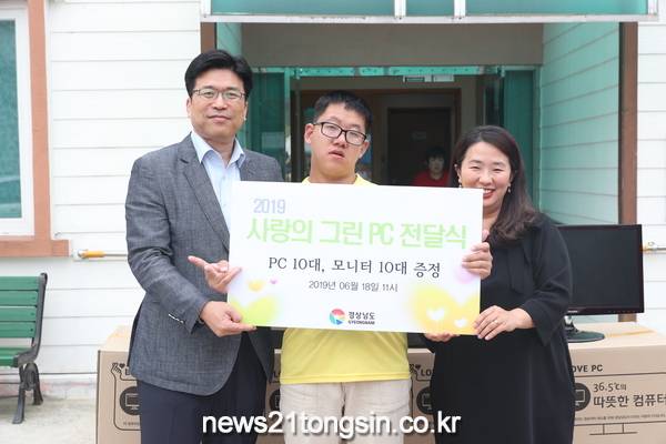 올해 첫 보급기관은 정신재활시설인 주순애원(경남 고성)으로, 18일(화) 김성엽 경상남도 기획조정실장이 직접 시설을 방문해 사랑의 그린PC 10대를 전달했다.